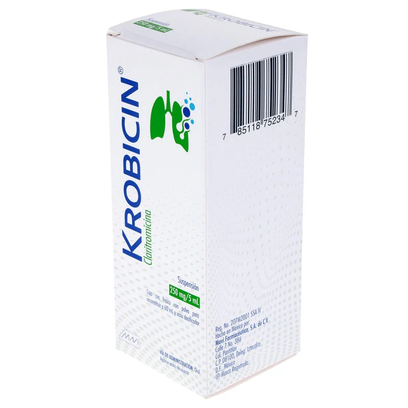 Cada 5 ml de Krobicin suspensión contiene 250 mg de claritromicina, además de excipientes que facilitan su formulación y estabilidad.